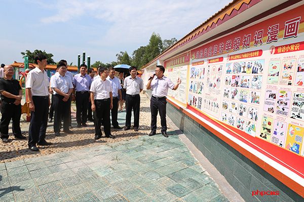 与会人员在钦北区平吉镇湴塘村参观党风廉政宣传工作情况