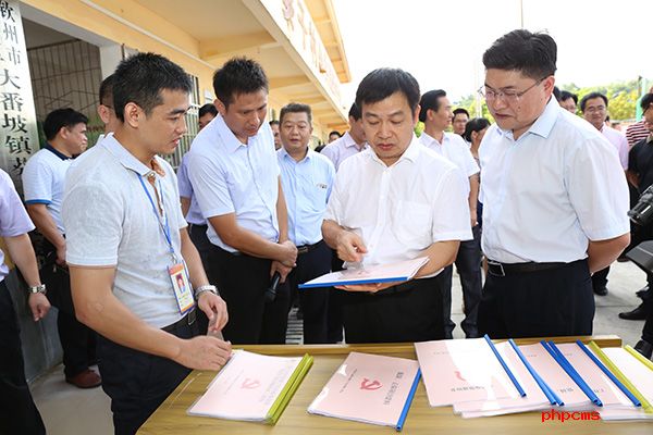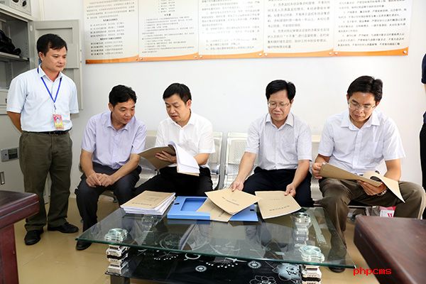 与会人员查看钦北区那蒙镇纪委规范化建设资料台账