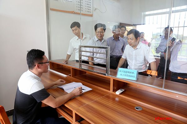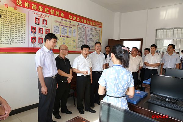 与会人员参观钦北区平吉镇纪委信访室规范化建设情况